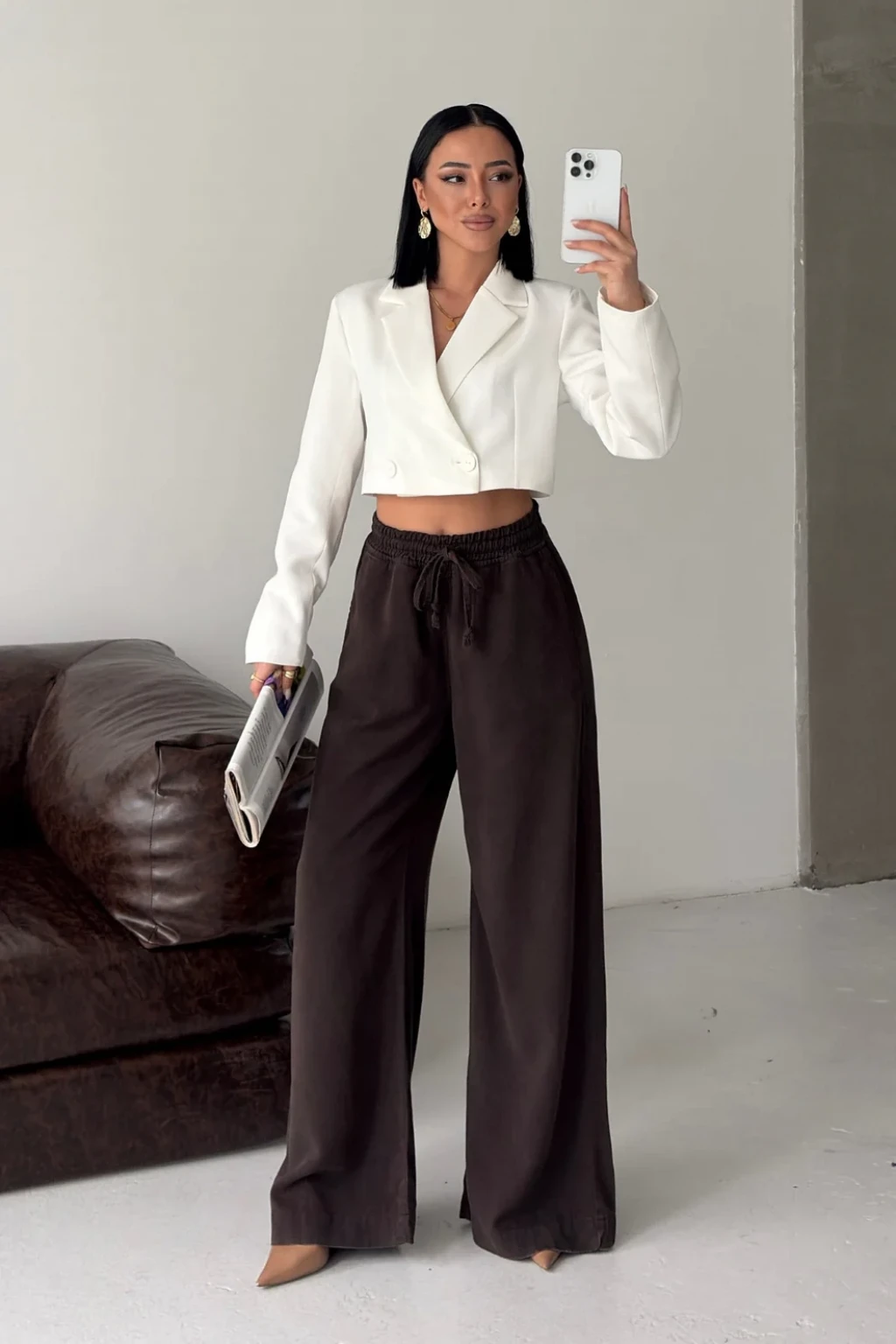 7163 KREM ÇİMALI BOL PAÇA PANTOLON